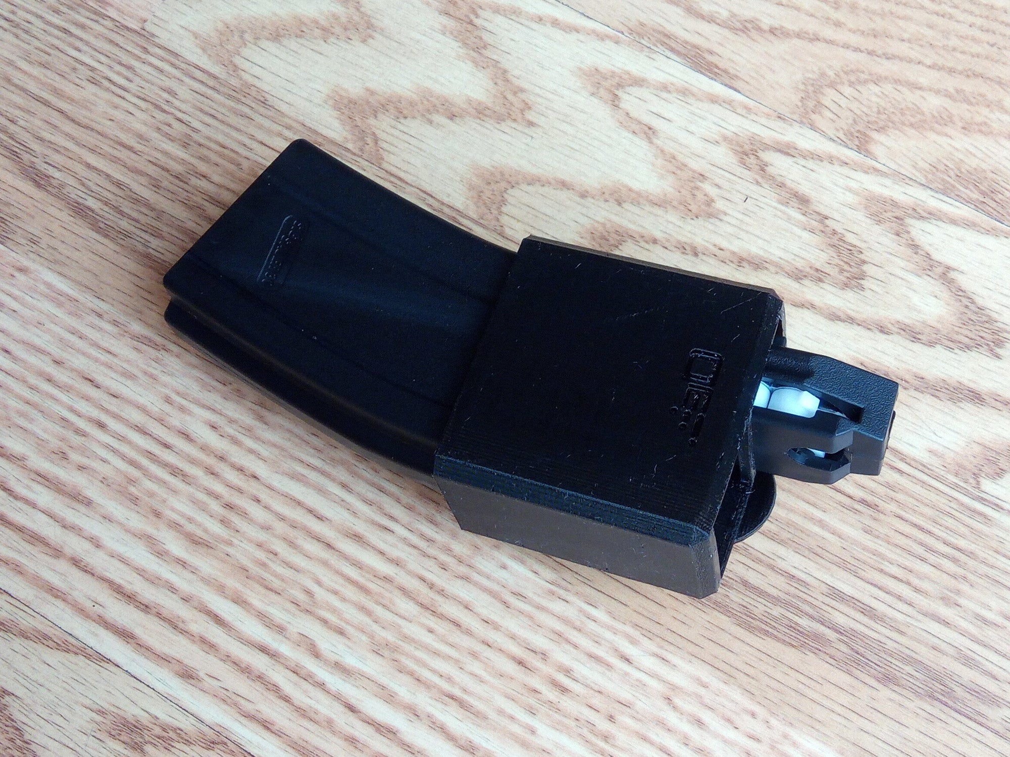 This magazine carrier pouch holds the MCX/MPX airgun magazine on 1.5" tactical belt. It has a belt clip that and fit a belt that is 39mm wide and 2.75mm thick. This mag carrier allows you to carry the magazine in four different orientations: