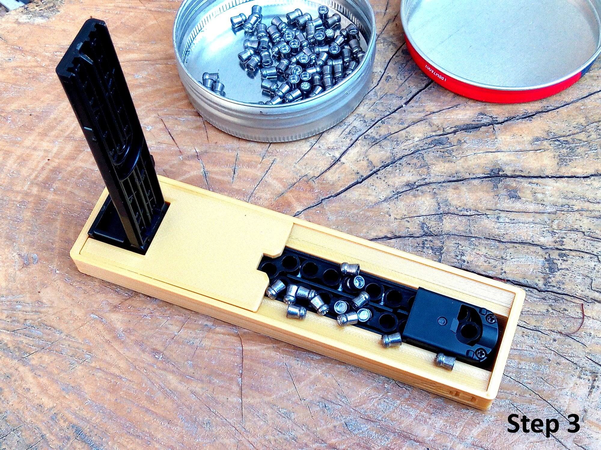 5) Press the pellets into the magazine belt. We suggest using the AirPower3D Pellet Seating Tool.