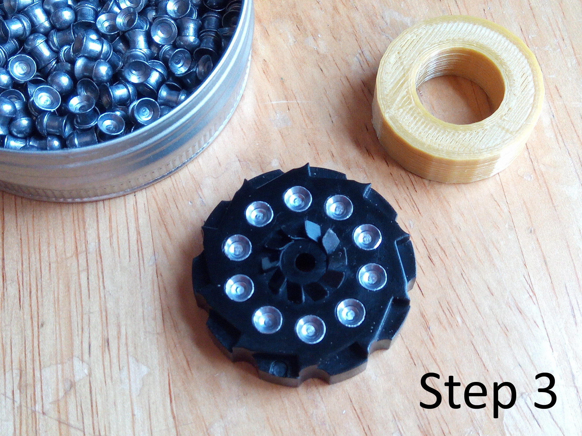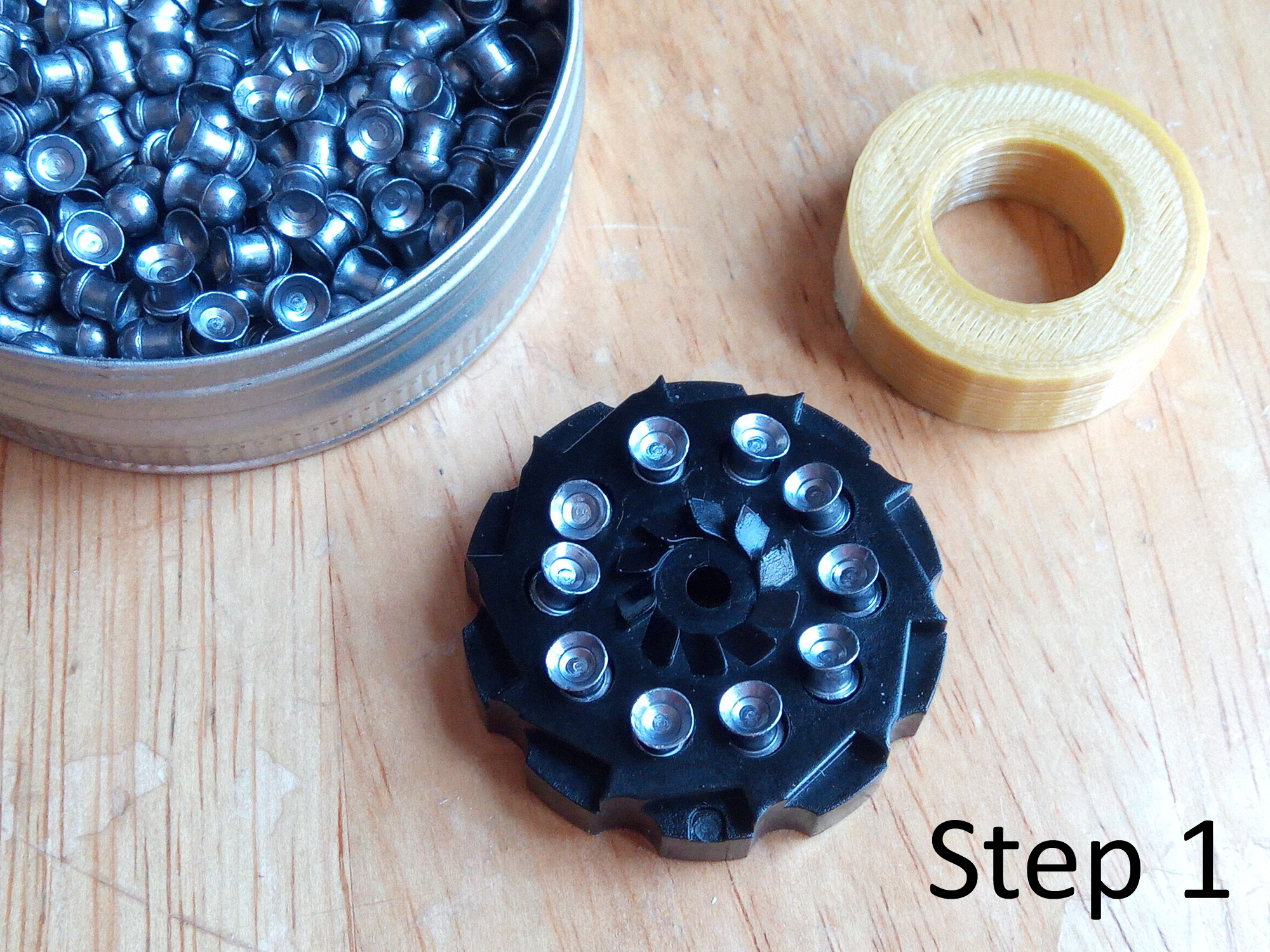 Airgun and airsoft equipment used for illustration of this pellets seating tool are not included.