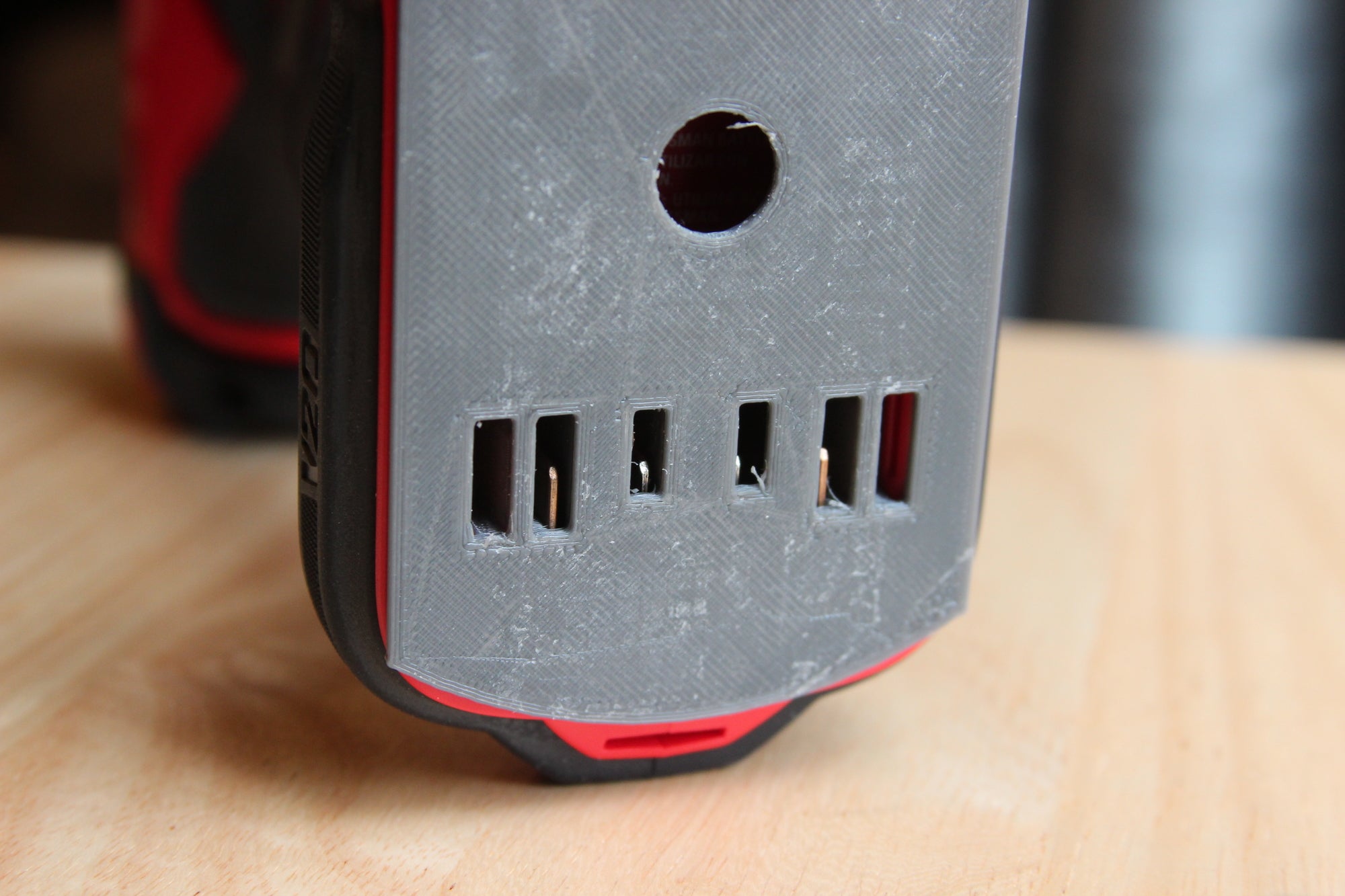 This EveryThang3D DIY interface provides the interface structure to tie in your own power source for the Craftsman V20 series of power tools. Built your own circuitry (not included). The interface easily slides and snaps into the V20 power tool battery slot. And it's easy to pop it off.
