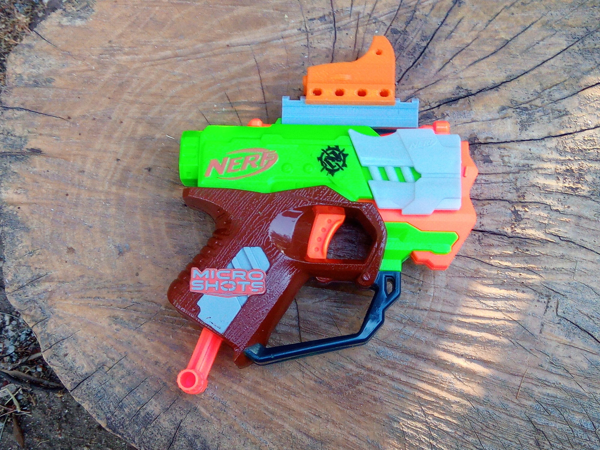 This is a Nerf MicroShots tactical rail to Picatinny rail adapter. It lets you convert the micro rail on your Nerf Micro Shots toy blaster to a standard NATO accessory rail for attaching standard Picatinny and Weaver accessories. It is build to MIL-STD-1913 milspec Picatinny specification. This adapter slides onto the Micro Shots rail and is hold in place by fiction.