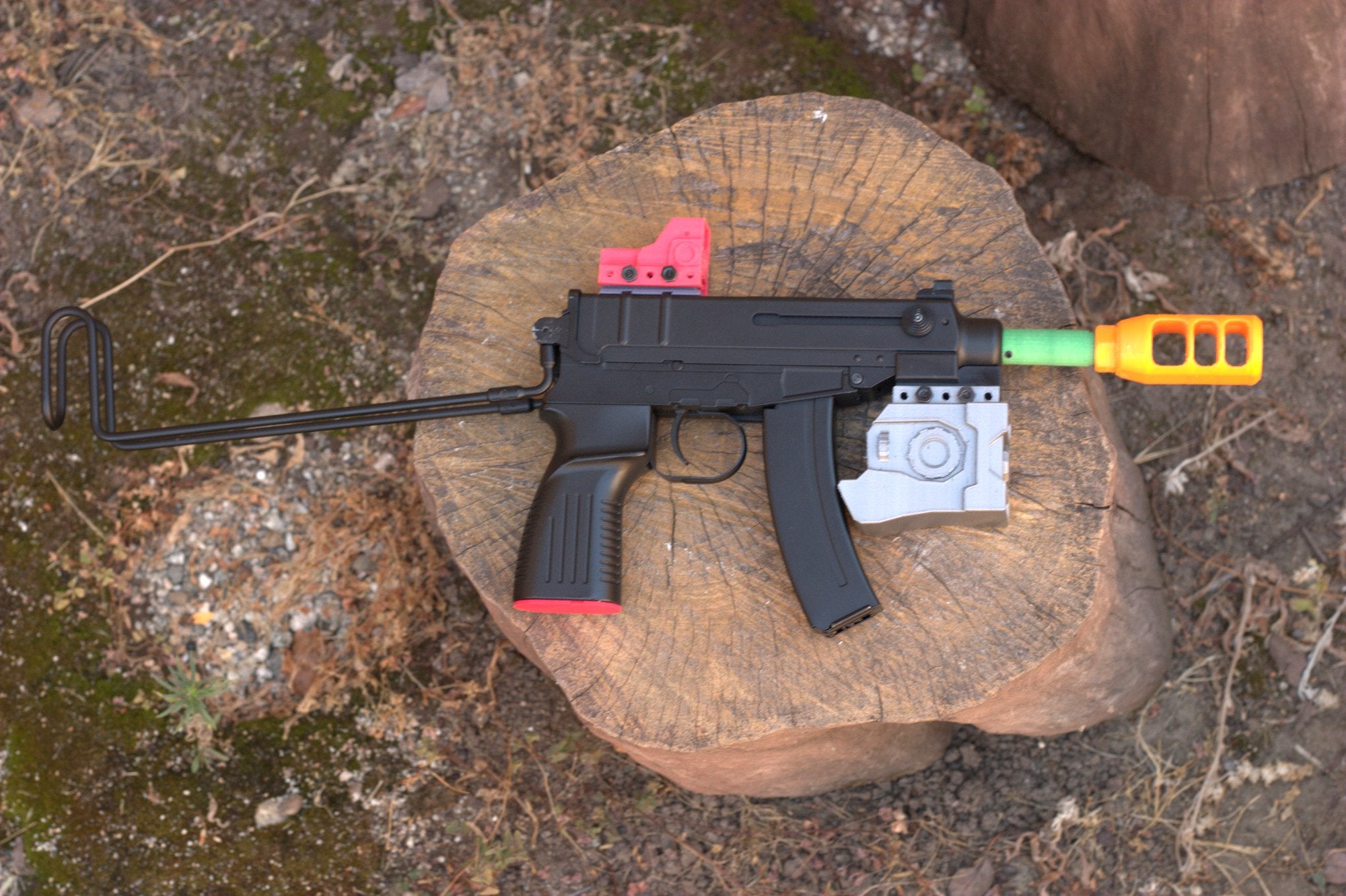 This mock Laser Aiming Module (LAM) is inspired by science fiction cyberpunk genre. This LAM has been depicted in the "Memory in the Wires" short story as part of the Venom VZ61 SMG weapon system:
